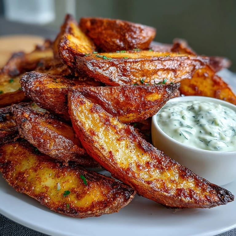 Save My air fryer sits on the counter like a trusted friend, and these potato wedges are what made me finally understand why everyone raves about the thing. One Sunday afternoon, I was craving that crispy-outside, fluffy-inside potato perfection without the mess of deep frying, and something clicked when I tossed these wedges with smoked paprika and let the air fryer work its magic. The spring onion dip came together almost by accident—a dollop of sour cream, some Greek yogurt I had lingering, a handful of green onions, and suddenly I had something worth making again and again.