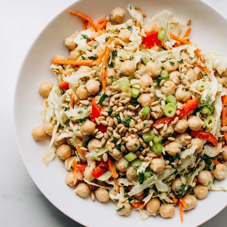 Save There's something about a bowl of chickpeas that catches me off guard every time. One afternoon, I was standing in my kitchen staring at a can of chickpeas and some wilting cabbage, thinking about how to make lunch feel less like a chore. I started shredding vegetables almost absentmindedly, and before I knew it, the smell of fresh lemon and toasted sesame filled the air. That's when I realized this simple salad had become my answer to wanting something nourishing without spending hours at the stove.