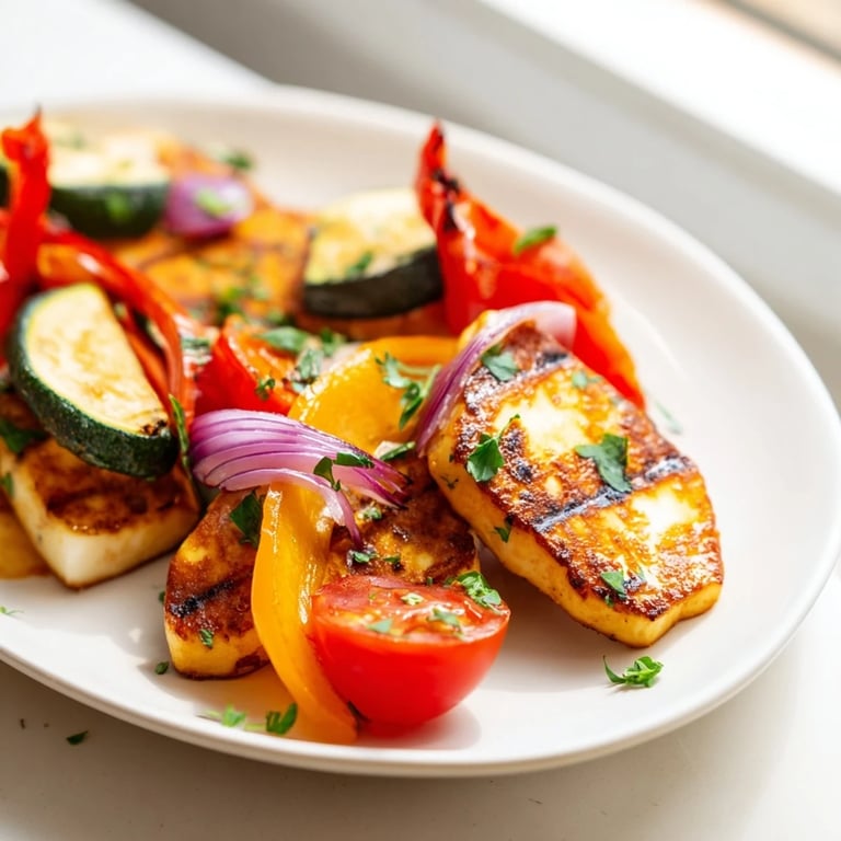 While best served immediately after grilling, you can prepare the vegetable marinade and slice the halloumi ahead of time. Store separately in the refrigerator, then grill everything fresh just before serving for optimal flavor and texture.