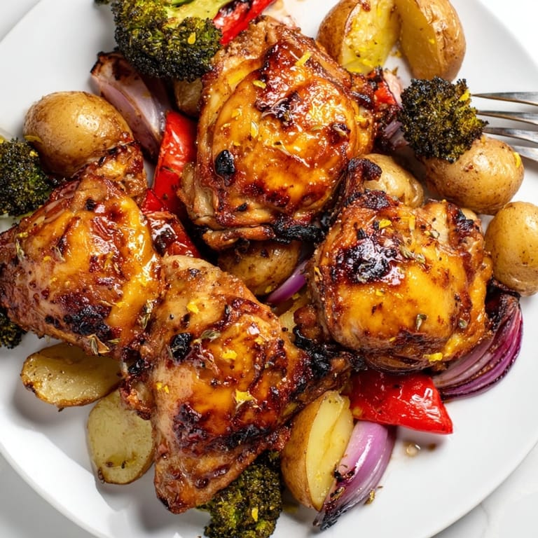 Save This vibrant honey lemon roasted chicken sheet pan is a go-to weeknight meal for bright flavor with minimal fuss. Juicy chicken thighs roast with sweet honey, zesty lemon, and plenty of seasonal vegetables for a family-friendly main dish that comes together in just half an hour and pleases everyone at the table.