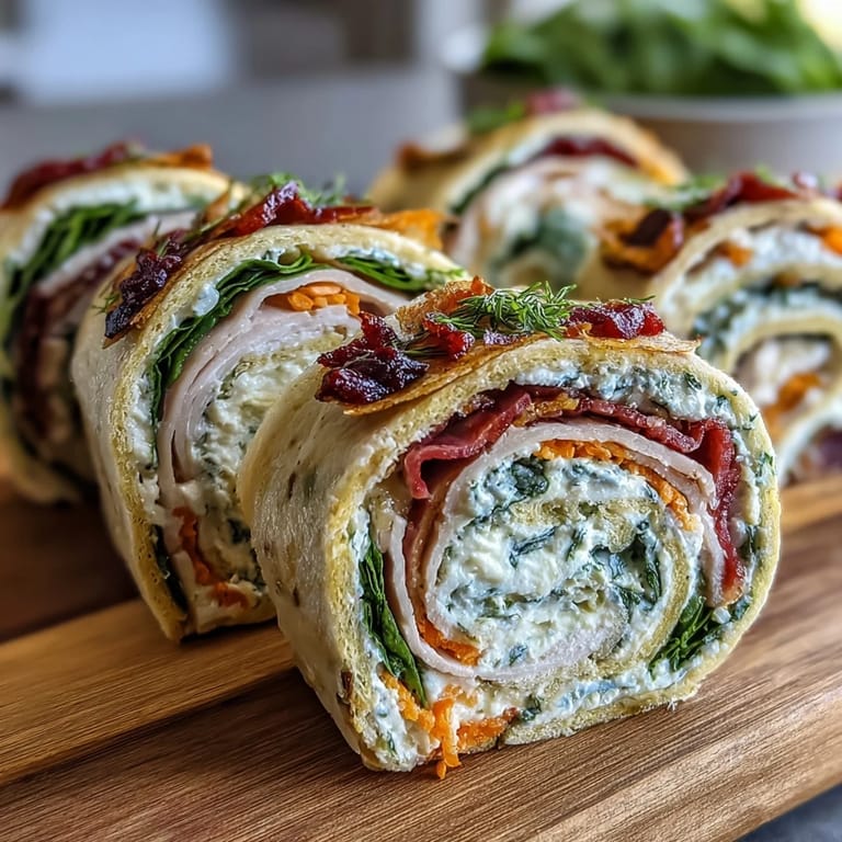 Take your time rolling the tortillas tightly to ensure the pinwheels hold their shape when sliced. Chilling the rolled wraps not only makes slicing easier but helps the flavors meld beautifully. Use a sharp knife for clean, neat pinwheels that look as good as they taste.