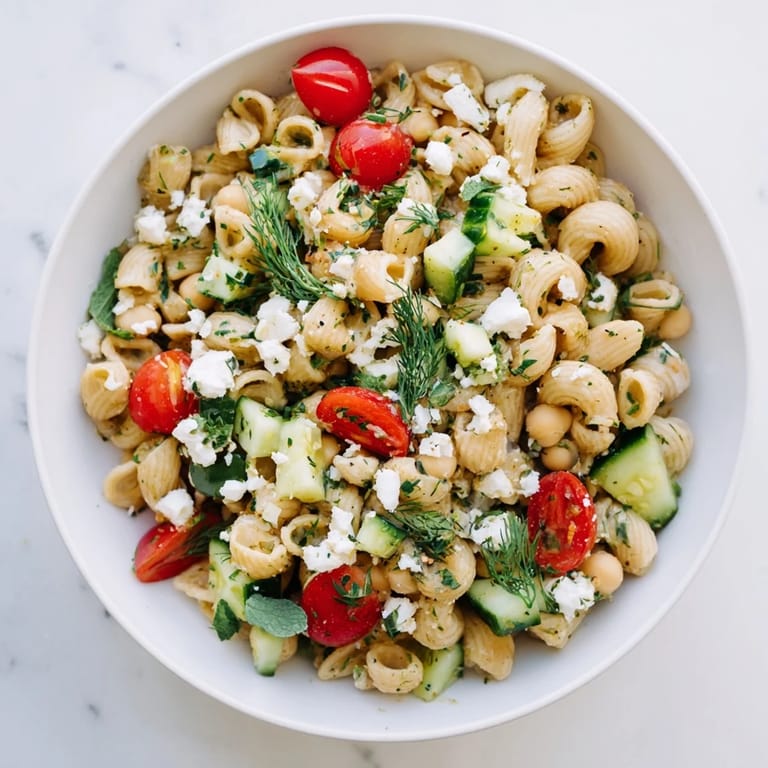 Save The air conditioning had been broken for three days during a July heatwave, and standing over a boiling pot of water felt like punishment. I had chickpea pasta in the pantry and a garden overflowing with herbs, so I threw everything together in a desperate attempt to eat something that did not require turning on the stove for longer than absolutely necessary. That bowl saved me, and now it is the first thing I make when summer starts feeling like too much.