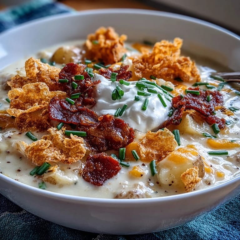 Save There's something about a bowl of loaded potato soup that makes you feel like you're sitting in someone's kitchen on a cold afternoon, wrapped in a blanket that smells like home. My aunt brought this to a family gathering years ago, and I watched people go back for seconds without thinking twice, which honestly never happens at our events. She called it funeral potatoes soup because it borrowed all those creamy, cheesy layers from the classic casserole we'd grown up eating at every church potluck, but poured into a bowl instead. What struck me most wasn't just how rich and comforting it was, but how she'd crushed potato chips right on top, which felt like a small rebellion against doing things the traditional way. That one detail changed everything about how I thought soup could be.