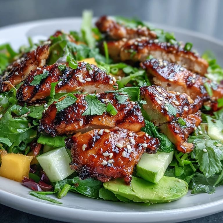 Save As you grill the marinated chicken, the honey and mango sugars caramelize slightly, creating a beautiful char that contrasts perfectly with the cool, crisp vegetables. Topped with nutty toasted sesame seeds and creamy avocado, every bite offers a symphony of textures and flavors that are both satisfying and light.