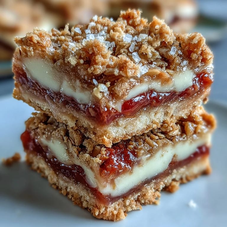 Save My neighbor dropped off a bundle of fresh rhubarb one Saturday morning, bright pink and impossibly tart. I had no plan for it, just a vague memory of my grandmother mentioning custard and crumble in the same breath. So I started layering: tangy fruit, silky vanilla custard, buttery oat topping. The kitchen smelled like spring bakery magic, and by the time they cooled, I had sixteen perfect bars that tasted like nostalgia I never actually had.