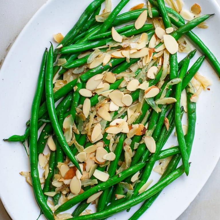 - Sprinkle the toasted almonds over the green beans and serve immediately