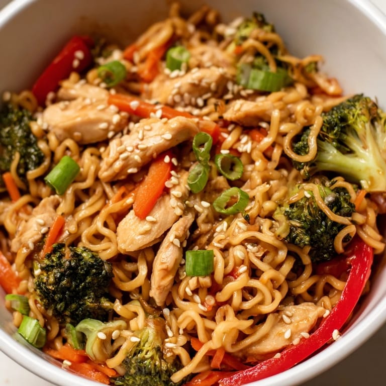 Swap the chicken for firm tofu or shrimp if you want a different protein, or leave it out entirely and load up on extra vegetables for a lighter version. I've added snap peas, mushrooms, baby corn, and even edamame depending on what's in the crisper drawer. You can also play with the noodles, using fresh ramen, rice noodles, or even soba if you want a nuttier flavor. The sauce is forgiving, so feel free to tweak the spice level, add a squeeze of lime, or toss in a handful of fresh basil at the end for a surprising twist.