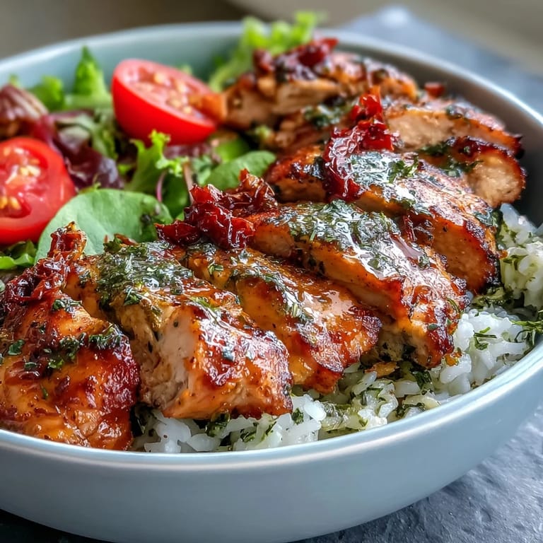 Save There's something about sun-dried tomatoes that stops me in my tracks at the market—that jewel-like intensity, the way they smell like concentrated summer. One Tuesday afternoon, I grabbed a jar on impulse and came home determined to build something around them rather than toss them into a pasta sauce like everyone else. That's when this bowl came together, almost by accident, turning a simple protein into something that felt restaurant-quality but required barely any fuss.