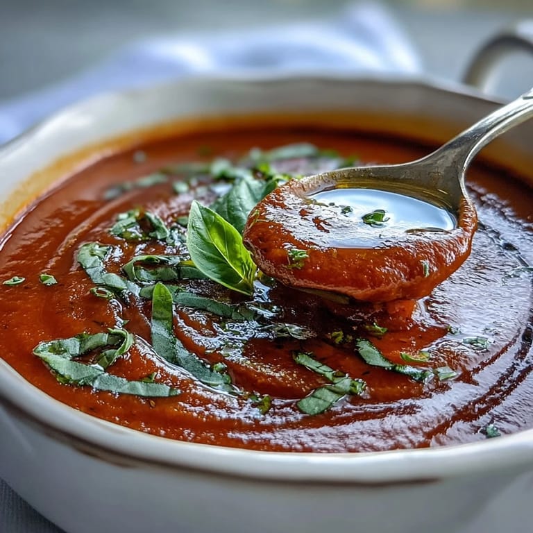 Save The first time I made tomato basil soup, I was standing in my kitchen on a cool October evening, surrounded by a mountain of perfectly ripe tomatoes from the weekend farmers' market. Their vibrant red skins seemed to demand something more elegant than pasta sauce. The scent of fresh basil from my windowsill garden caught my attention, and inspiration struck. The aroma that filled my apartment as the tomatoes slowly simmered was nothing short of intoxicating, transforming a simple weeknight into something extraordinary.